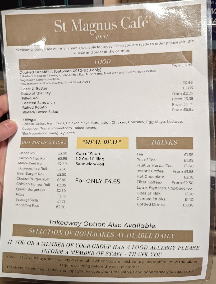 The moment you walk through the door, you’re greeted by a friendly smile and the enticing aroma of freshly prepared dishes. St Magnus Community Cafe is especially renowned for its breakfast menu, featuring the price-friendly St Magnus Breakfast for only £1.45. Beyond breakfast, the extensive selection of hot rolls and snacks is bound to whet your appetite—think of luscious Bacon Rolls, hearty Mince Beef Rolls, and the vegetarian-friendly Quorn Burger, ensuring there’s something for everyone. For those craving something warm and comforting, the delicious chicken and sausage rolls receive rave reviews from regulars who come back again and again.